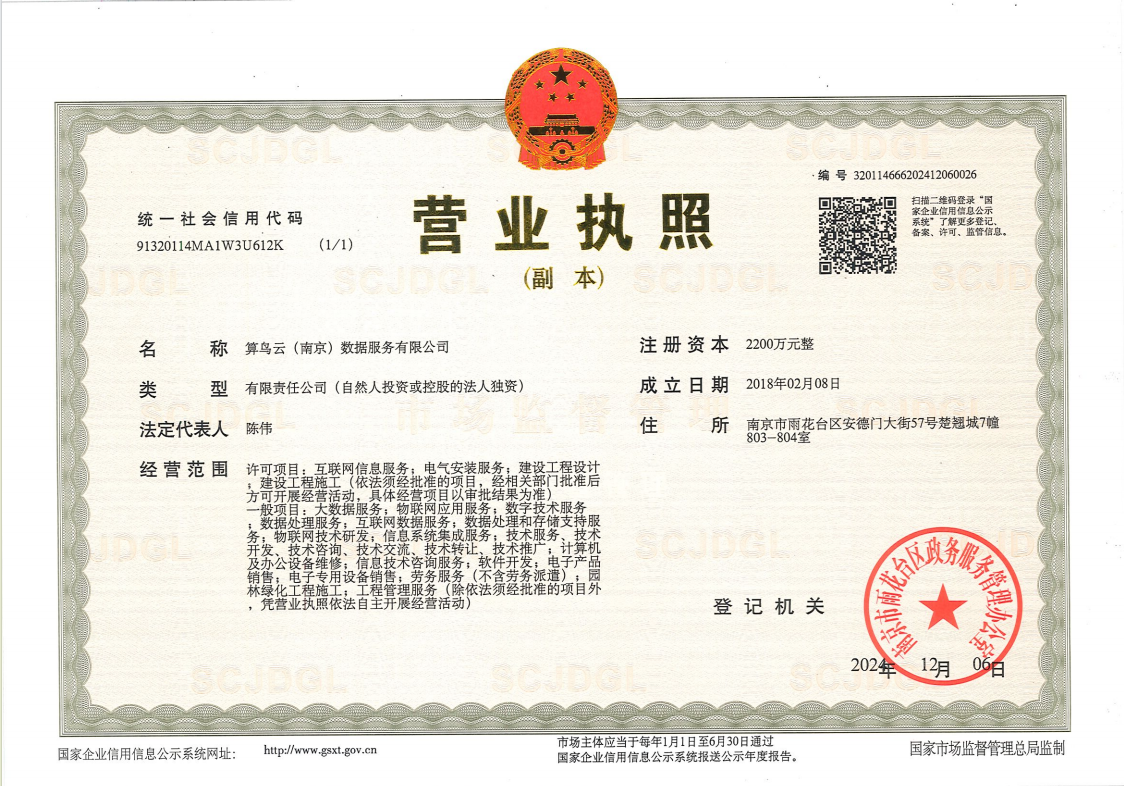 新立訊科技集團(tuán)全資子公司 “南京新立訊物聯(lián)網(wǎng)技術(shù)服務(wù)有限公司”經(jīng)國(guó)家市場(chǎng)監(jiān)督管理總局核準(zhǔn),南京市市場(chǎng)監(jiān)督管局登記備案,正式更名為“算鳥云...