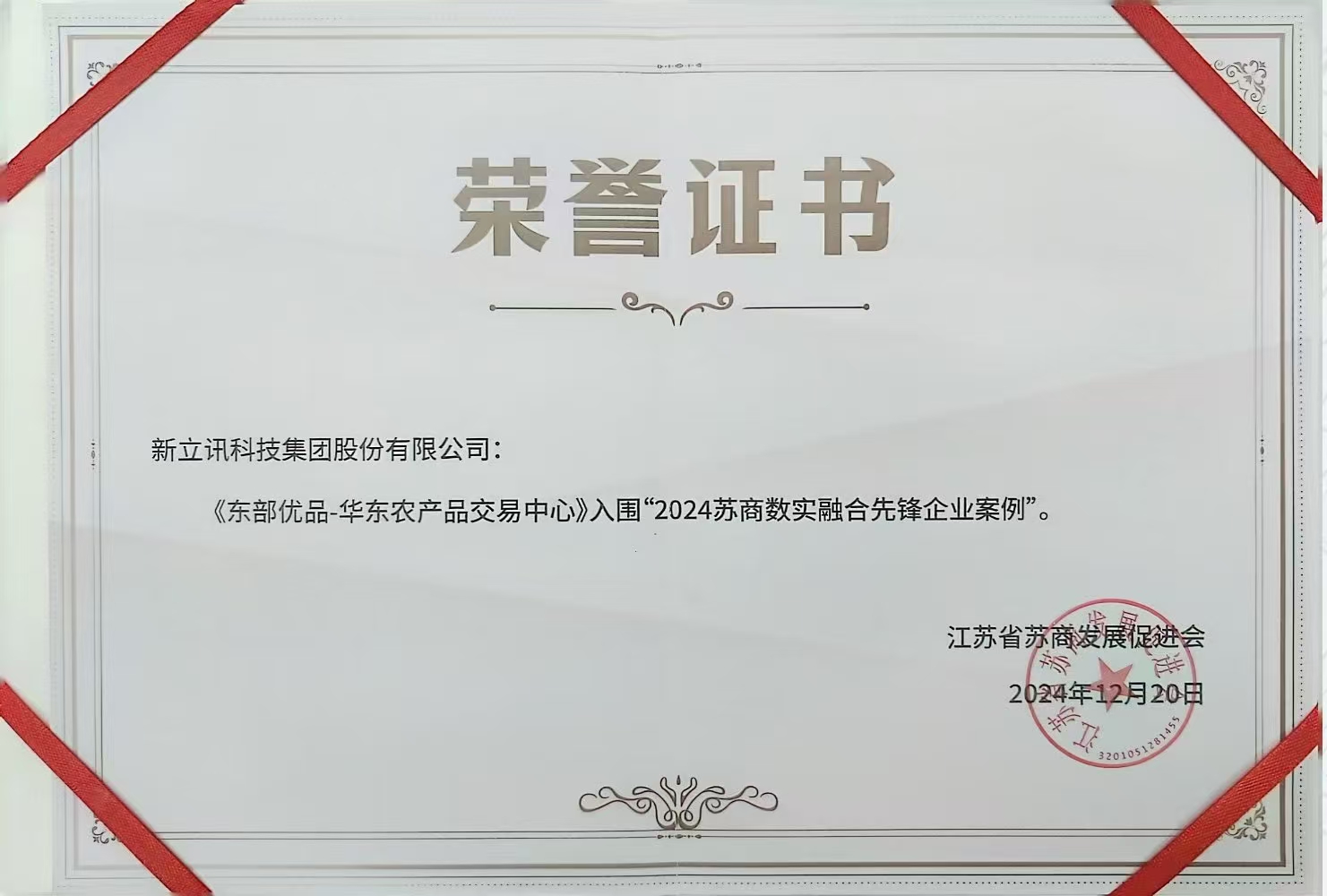 新立訊科技集團《東部優品-華東農產交易中心》入圍“2024蘇商數實融合先鋒企業案例”