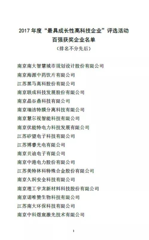 2017年12月1日,公布了2017年度江蘇省最具成長(zhǎng)性高科技企業(yè)100家名單,南京新立訊科技股份有限公司等一批優(yōu)秀的科技型企業(yè)榮獲2017年度江蘇省“最具成長(zhǎng)性高科技企業(yè)”稱號(hào)。
