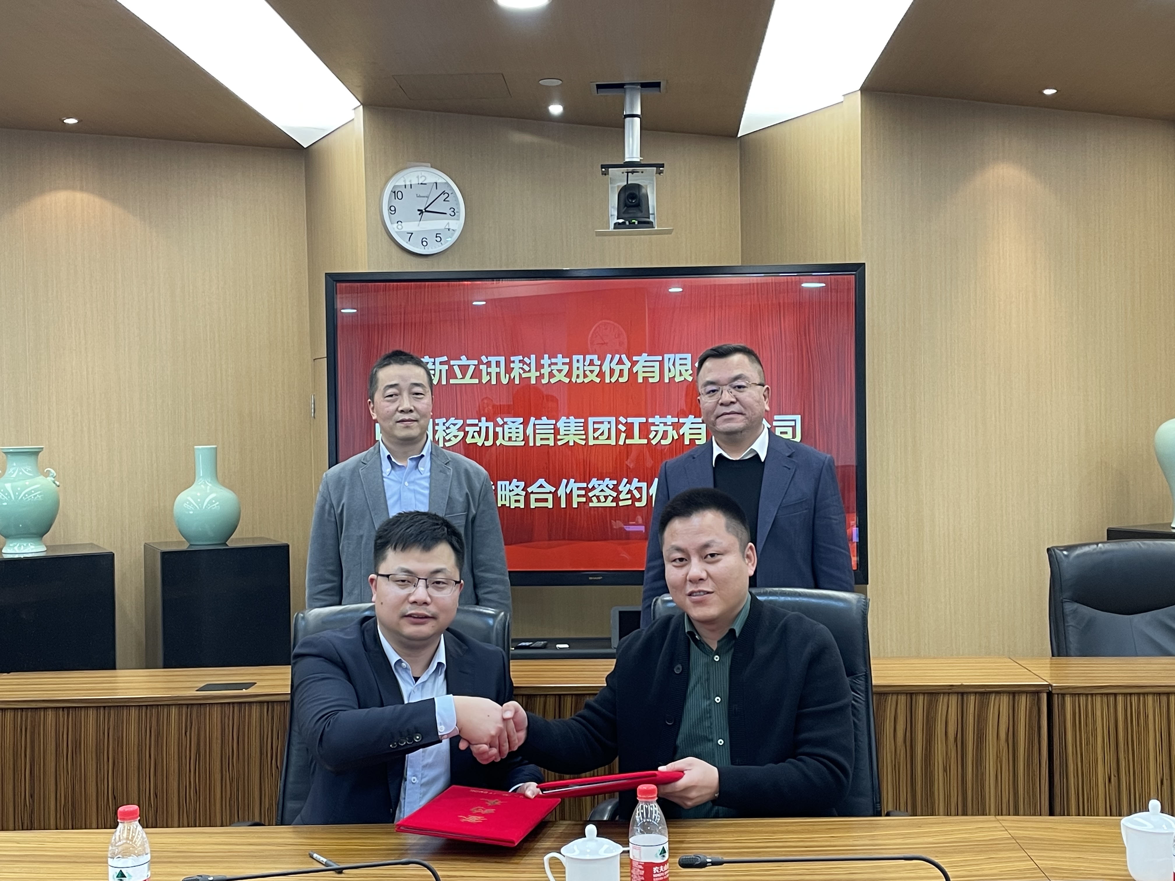 2024年1月25日,新立訊與中國移動通信集團江蘇有限公司在省移動大樓913會議室舉行戰(zhàn)略合作簽約儀式。中國移動通信集團江蘇有限公司省政企客戶中心副總經(jīng)理陸辰飛,省集團客戶部行業(yè)應用中心總經(jīng)理卜榮勝,南京移動集團客戶部總經(jīng)理蔡璨,雨花臺移動總經(jīng)理許文博等移動公司代表出席。新立訊董事長兼總經(jīng)理毛霖攜財務總監(jiān)彭亮,華東事業(yè)部總經(jīng)理陳凱,西北事業(yè)部總經(jīng)理楊楊等管理層出席簽約。